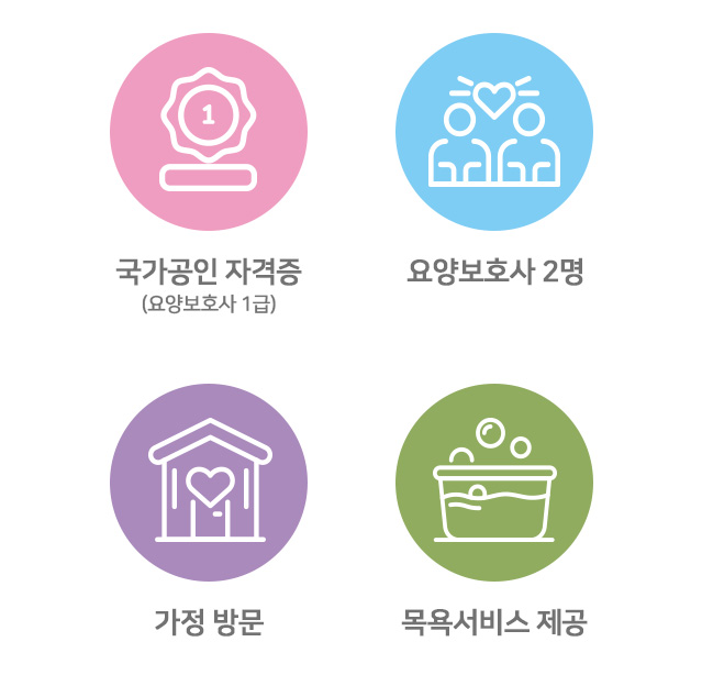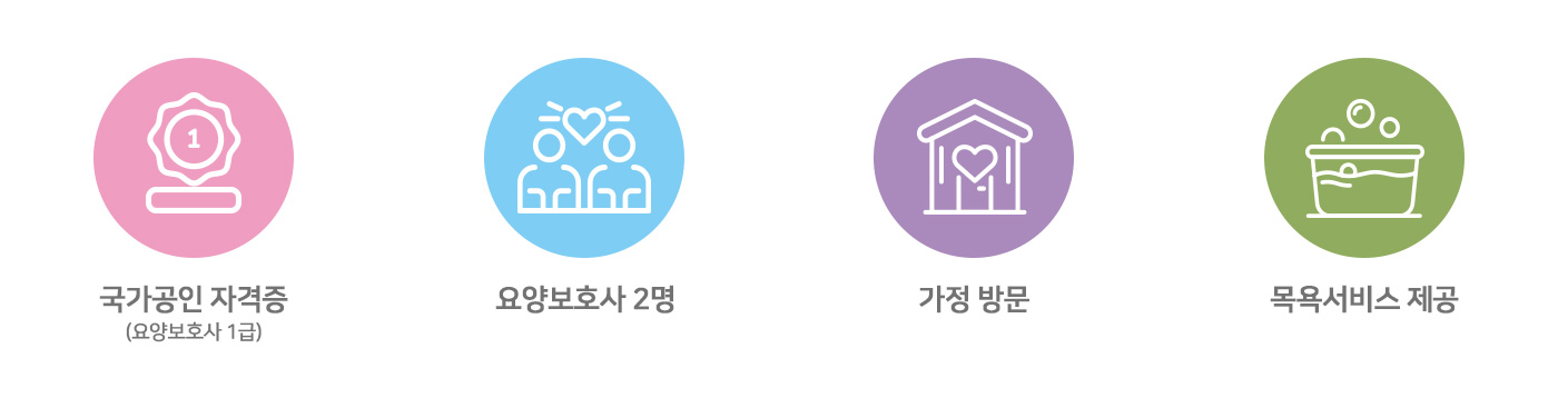 거동이 불편하여 스스로 목욕을 할 수 없는 대상자에게 2인의 요양보호사가 가정을 방문, 정기적으로 목욕을 제공하여 신체의 청결유지와 근육경직 예방 및 심리적 안정감을 향상시키는 재가요양 서비스입니다.