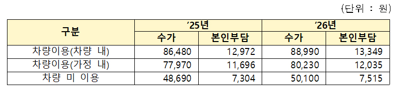 ※ 방문목욕의 급여비용은 2인 이상의 요양보호사가 60분 이상 서비스를 제공한 경우에 산정하며, 다만 소요시간이 40분 이상 60분 미만인 경우에는 해당 급여비용의 70%를 산정합니다.