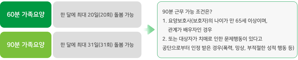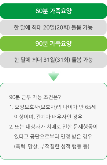 ▪ 가족요양은 하루 돌봄 시간이 60분 / 90분으로 정해져 있습니다.